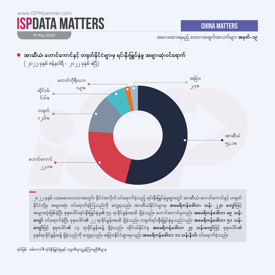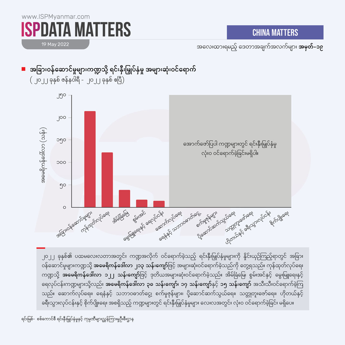 login to enlarge image Login အာဆီယံ၊ ဟောင်ကောင်နှင့် တရုတ်နိုင်ငံများမှ ရင်းနှီးမြှုပ်နှံမှု အများဆုံး ဝင်ရောက်