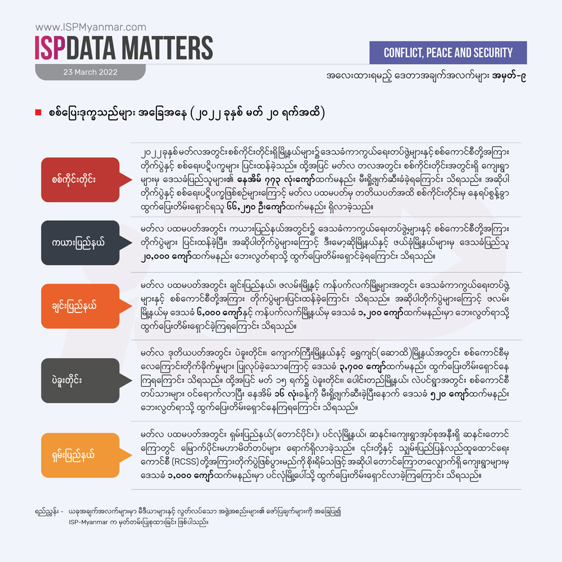 စစ်ကိုင်းတိုင်းနှင့် ကယားပြည်နယ်တွင် စစ်ကောင်စီနှင့် ဒေသခံကာကွယ်ရေးတပ်ဖွဲ့များ တိုက်ပွဲအများဆုံး ဖြစ်ပွား