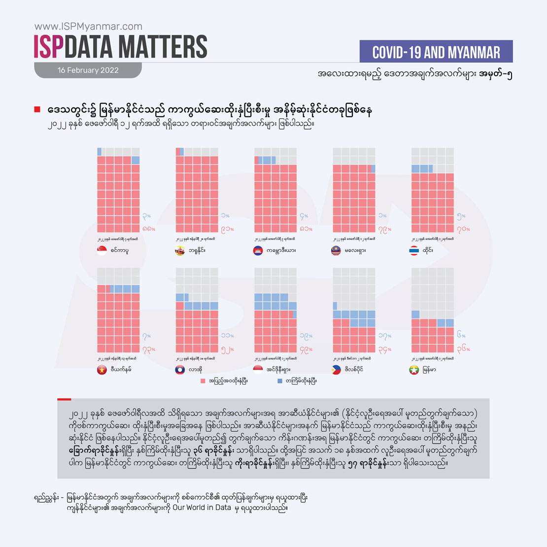 ဒေသတွင်း၌ မြန်မာနိုင်ငံသည် ကာကွယ်ဆေးထိုးနှံပြီးစီးမှု အနိမ့်ဆုံးနိုင်ငံတခု ဖြစ်နေ