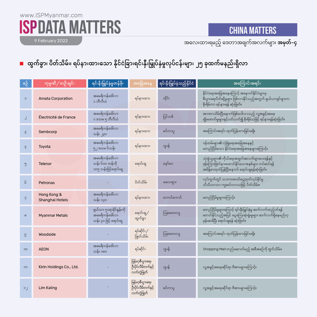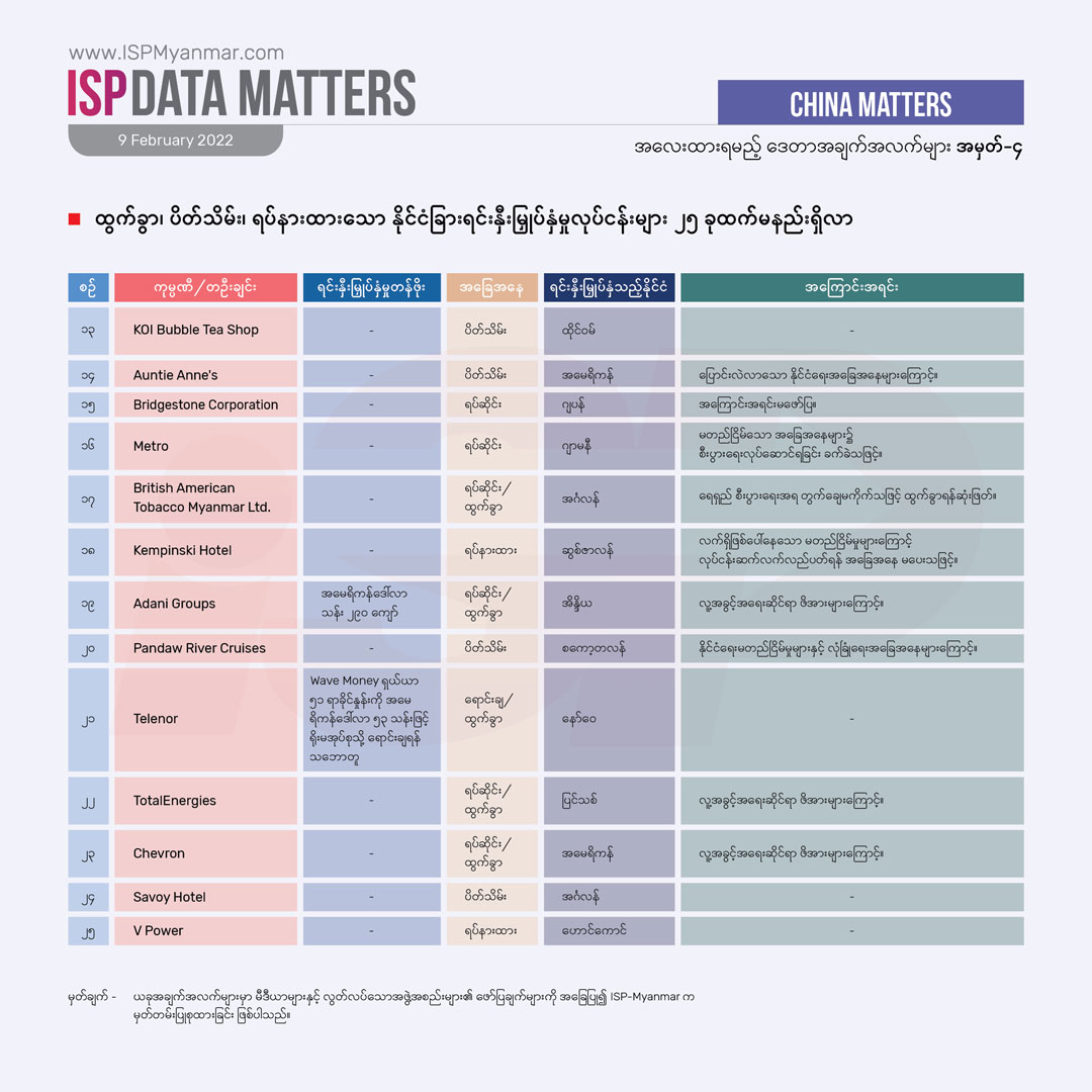 ထွက်ခွာ၊ ပိတ်သိမ်း၊ ရပ်နားထားသော နိုင်ငံခြားရင်းနှီးမြှုပ်နှံမှုလုပ်ငန်းများ ၂၅ ခုထက်မနည်း ရှိလာ
