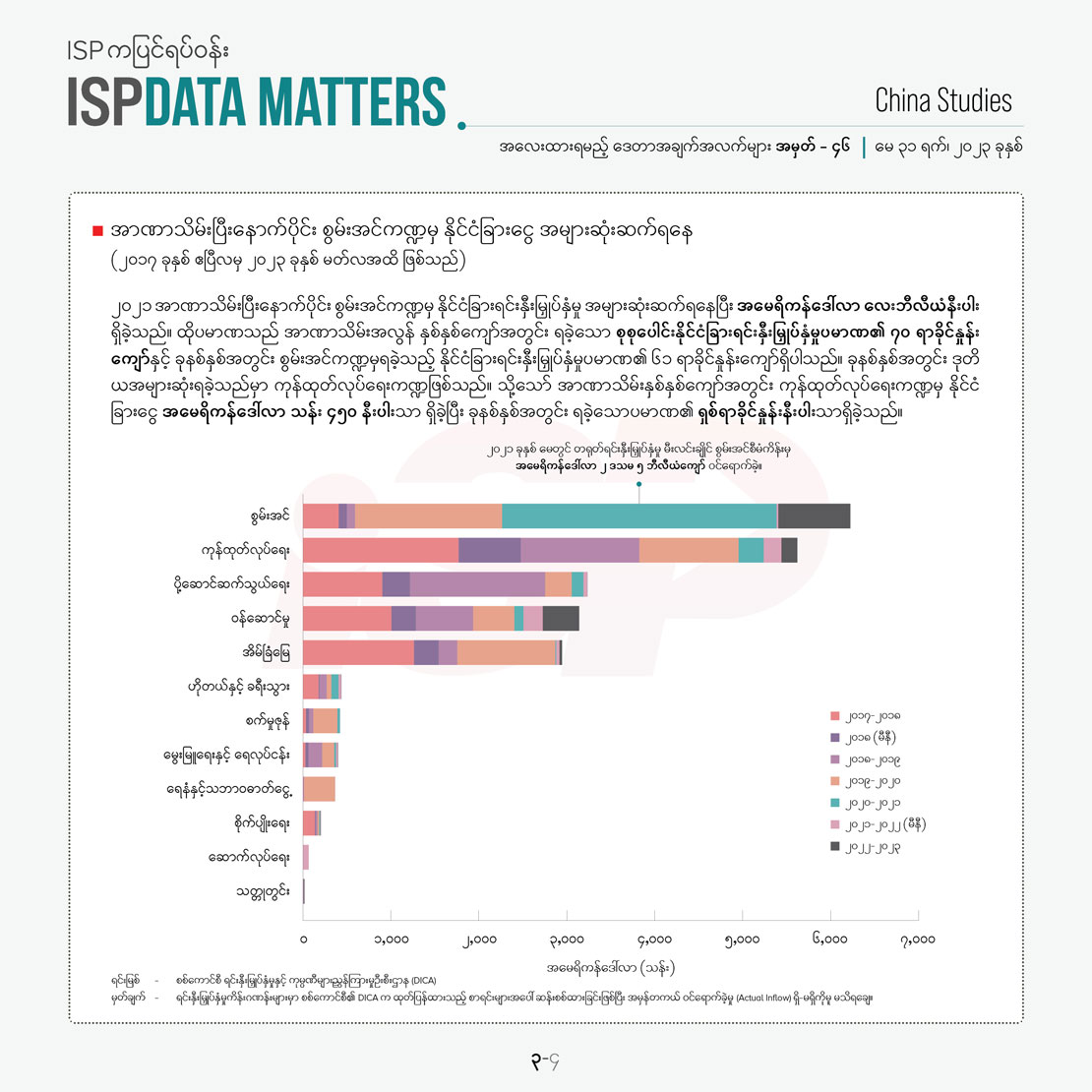 အာဏာသိမ်းနှစ်နှစ်ကျော်အတွင်း နိုင်ငံခြားရင်းနှီးမြှုပ်နှံမှု အမေရိကန်ဒေါ်လာ ၅ ဒသမ ၄ ဘီလီယံကျော်ရှိခဲ့