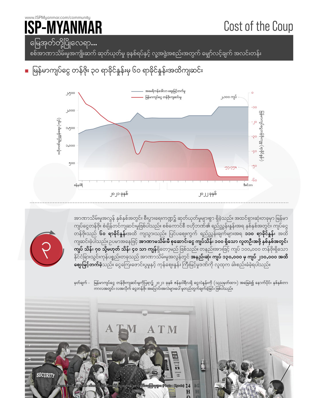 မြန်မာကျပ်ငွေတန်ဖိုး ၃၀ ရာခိုင်နှုန်းမှ ၆၀ ရာခိုင်နှုန်းအထိ ကျဆင်း