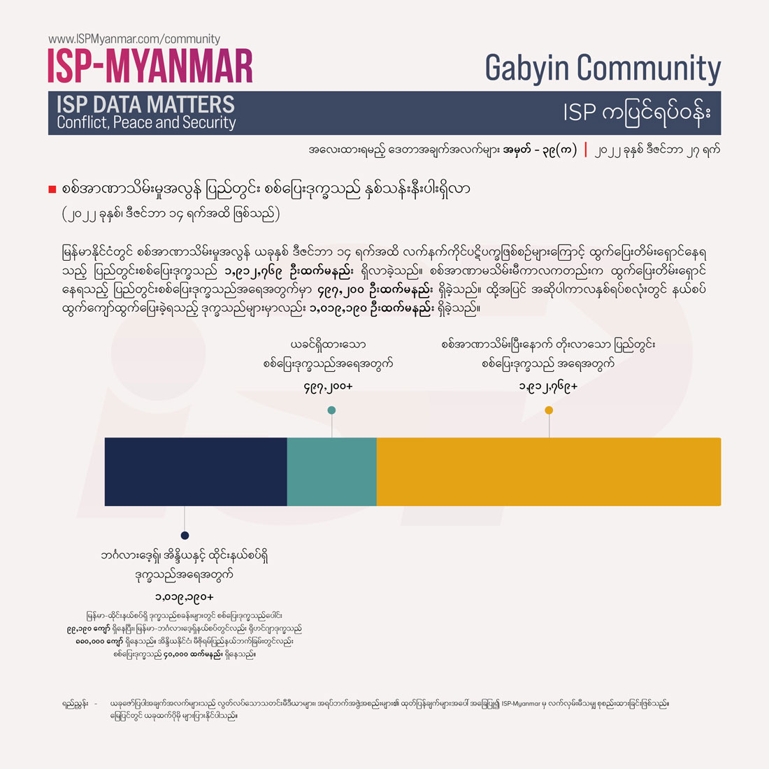 စစ်ကိုင်းတိုင်းရှိ စုစုပေါင်း လူဦးရေ၏ ၁၅ ရာခိုင်နှုန်းမှာ စစ်ပြေးတိမ်းရှောင်နေရ