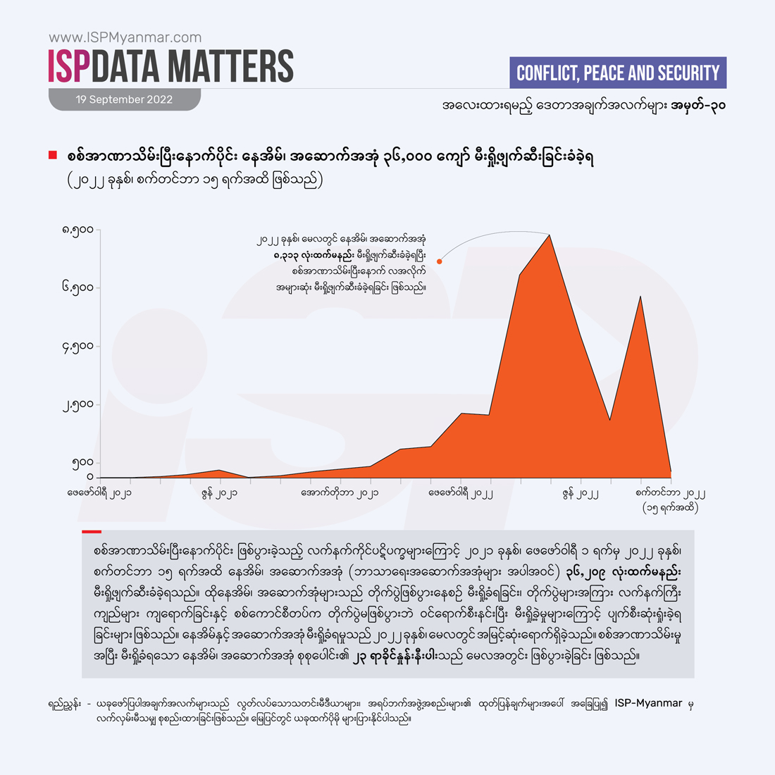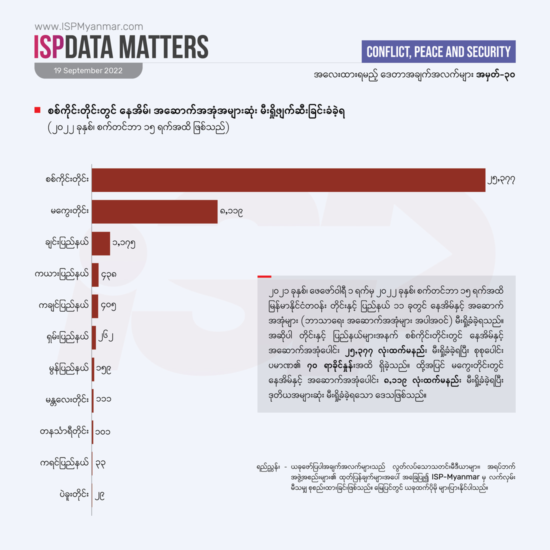 ဩဂုတ်လအတွင်း စစ်ကိုင်းတိုင်း၊ မကွေးတိုင်းနှင့် ကချင်ပြည်နယ်တို့၌ နေအိမ်မီးရှို့ဖျက်ဆီးခံရမှု အများဆုံးဖြစ်ခဲ့