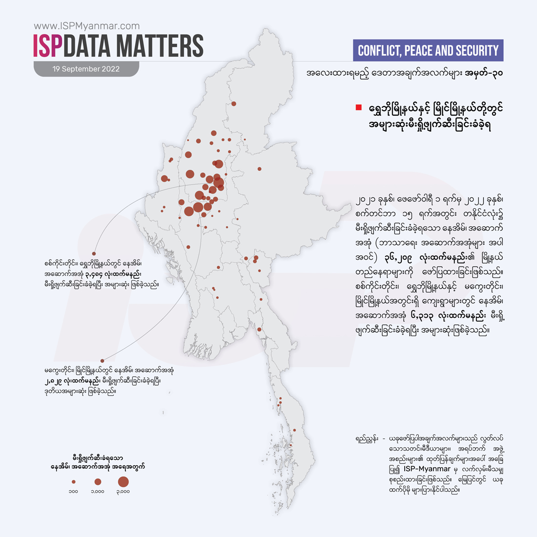 ရွှေဘိုမြို့နယ်နှင့် မြိုင်မြို့နယ်တို့တွင် အများဆုံးမီးရှို့ဖျက်ဆီးခြင်းခံခဲ့ရ