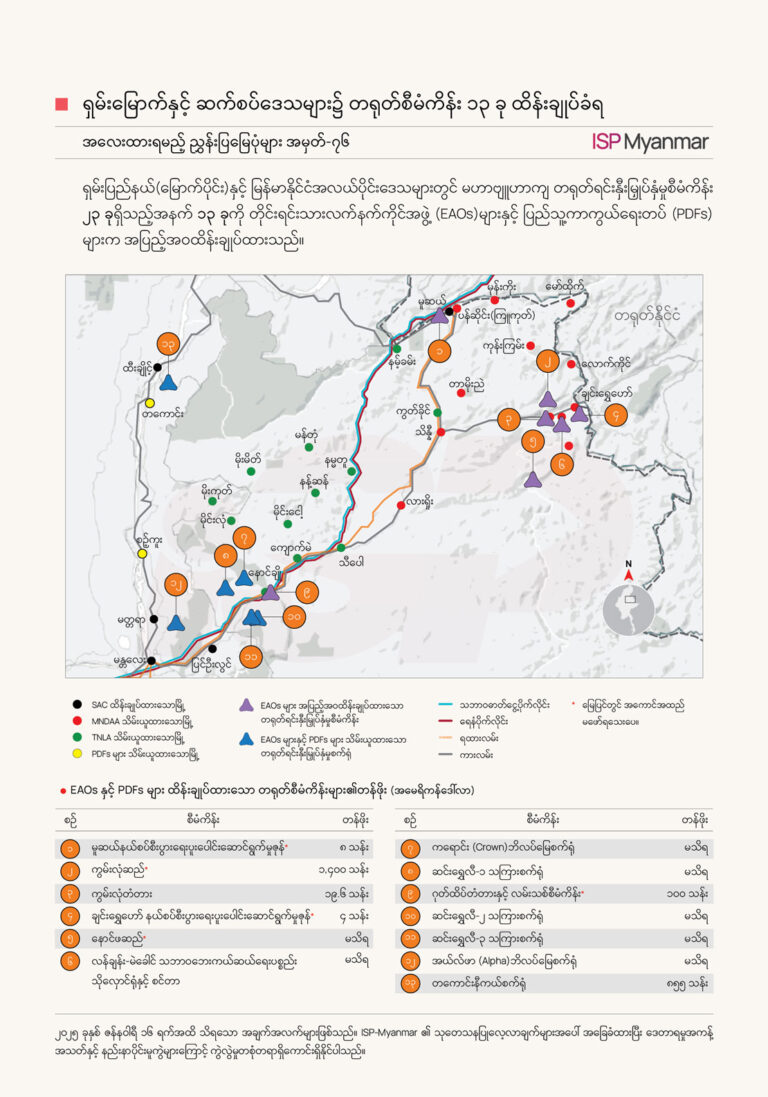 login to enlarge image Login ရှမ်းမြောက်နှင့်ဆက်စပ်ဒေသများ၌ ထိန်းချုပ်ခံထားရသော တရုတ်စီမံကိန်း ၁၃ ခုရှိ