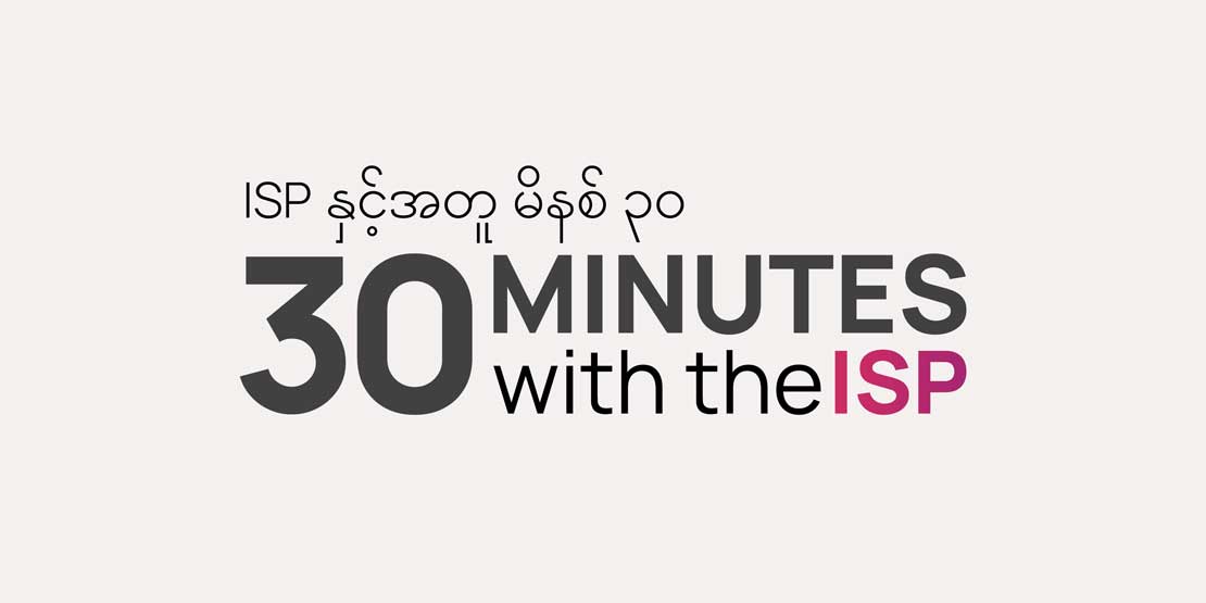 ဒီအခြေအနေတွေကနေ ဖောက်ထွက်နိုင်ဖို့ အားထုတ်မှုတခုအဖြစ် ‘ISP နှင့်အတူ မိနစ် ၃၀’ အစီအစဉ်ကို စတင်ချင်တာပါ။ မြန်မာနိုင်ငံမှာ လွတ်လပ်စွာ ကွဲလွဲမှုနဲ့ အမြင် မတူညီမှုအပေါ် သည်းခံနိုင်စွမ်းကို အားပေးတဲ့၊ သုတေသန အခြေခံတဲ့၊ အများပြည်သူလူထုရဲ့ အကျိုးစီးပွားကို မျက်ခြည်မပြတ်တဲ့ သိမှုဝန်းကျင် (epistemic community) တရပ် ပေါ်ထွန်းရေးကို တထောင့်တနေရာကနေ ထမ်းဆောင်ချင်လို့ပါပဲ။ ဒီအစီအစဉ်ဟာ စည်းရုံး သွေးဆောင်ဖို့ထက် မျှဝေဖို့ကို ပိုအားထုတ်ပါတယ်။ သုတေသန တွေ့ရှိထားသမျှကို ရိုးရိုးသားသား တင်ပြမယ်၊ သိလိုစိတ်ကို နှိုးဆွမယ်။ ဒီလိုဆောင်ရွက်ရာမှာ လက်ခံယုံကြည်ထားတာတွေကို မပြောင်းမလဲ အခိုင်အခံ့ ပြုတာထက် လက်ခံ ယုံကြည်ထားတာတွေကို တဆင့်ထက် တဆင့် မြင့်သထက်မြင့် ပိုမို ကောင်းမွန်လာအောင် အားထုတ်ခြင်းဖြင့် လေ့လာသင်ယူမှုကို မြှင့်တင်ပါမယ်။ ပညာပြာသာဒ် တည်ပါမယ်။ ISP-Myanmar က ခံယူထားတဲ့ အသိပညာနဲ့ ပတ်သက်လို့ တည်ကြည်မှု (integrity) ဟာ ဆိုခဲစေမြဲစေ၊ ရှေ့နောက်ညီစေ ဆိုတာမျိုး မဟုတ်ပါဘူး။ သိမှု အပေါ်မှာ ရိုးသားတာပါ။ သိမှုကို အချက်အလက် အထောက်အထားနဲ့ အမြဲ ဆန်းစစ်နေပြီး မှားရင်ပြင်၊ လိုရင်ထပ်ဖြည့်၊ အသစ်တွေ့ရှိချက်တွေကို ပေါင်းစပ်ပြီး တိုင်းပြည်အတွက် သိမှု အားကောင်းအောင် ဆောင်ရွက်ဖို့ စိတ်နှလုံးကို ဖွင့်ထားပြီး ရိုးသားတာမျိုး ဖြစ်ပါတယ်။